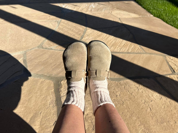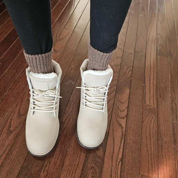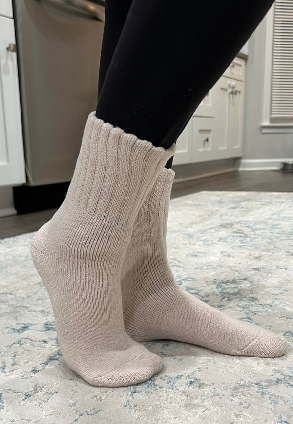 "I love everything about these socks! Comfy, soft, keep the feet warm. No grip at the bottom. I'm wearing the socks in boots or with slippers at home."