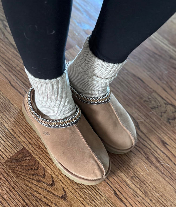 "The socks are nice and thick too so they keep you warm. The quality is good too I’ve had them for a while and wear them all the time with my uggs and don’t have to worry about wear and tear."